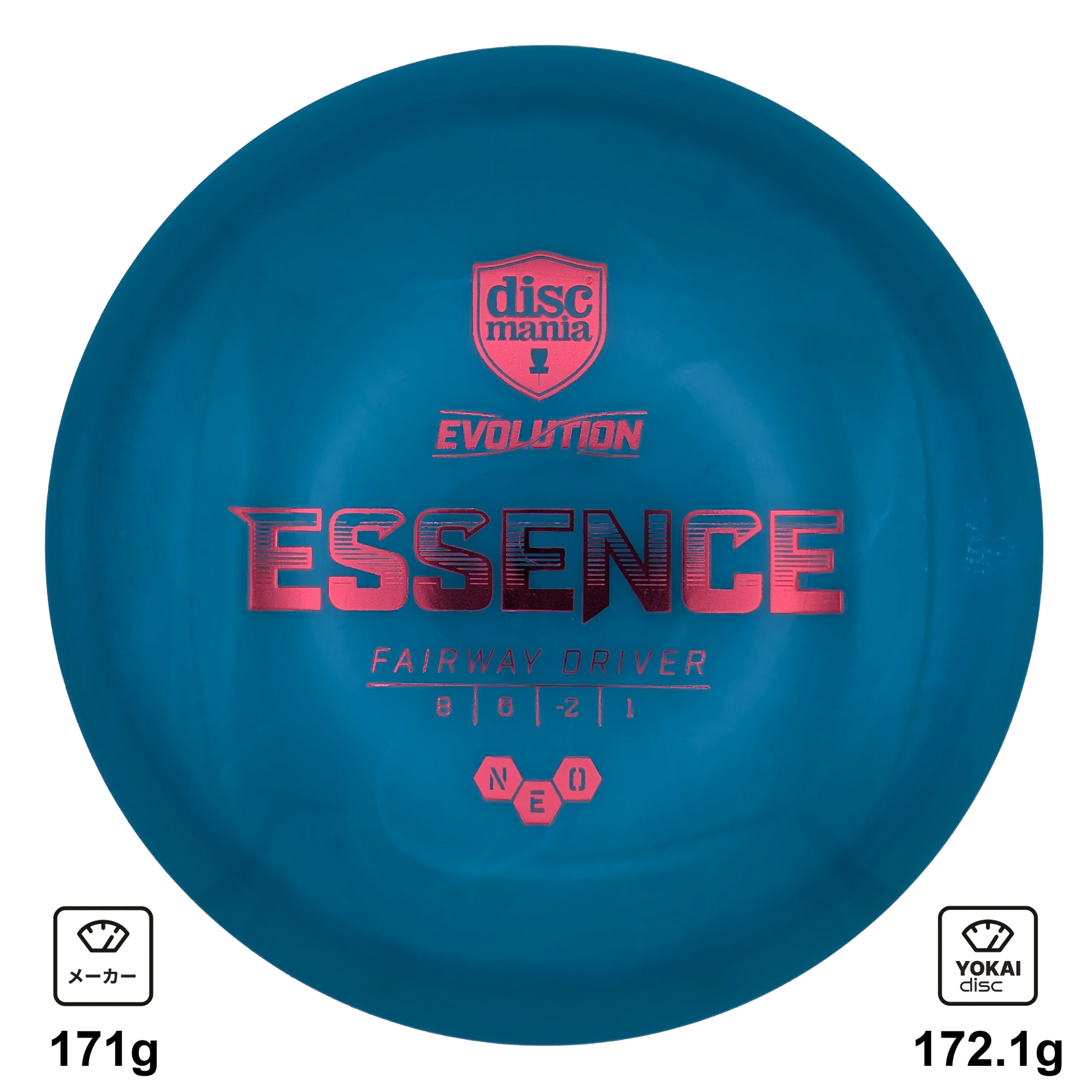 The Essence is the do-it-all fairway driver in the Evolution line up. Given the understable nature of the Essence, this disc is best suited for players looking for their first distance driver, backhand or smooth forehand throws, tailwinds, and excellent roller shots. The rounded semi-blunt nose of the disc allows for fantastic roller shots and controlled backhand or forehand throws when you need it most.