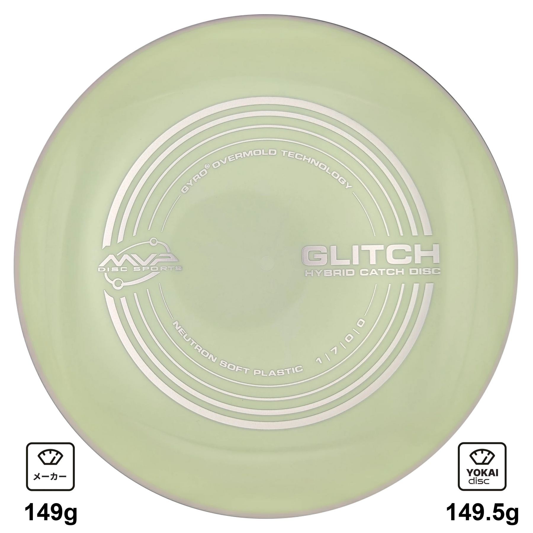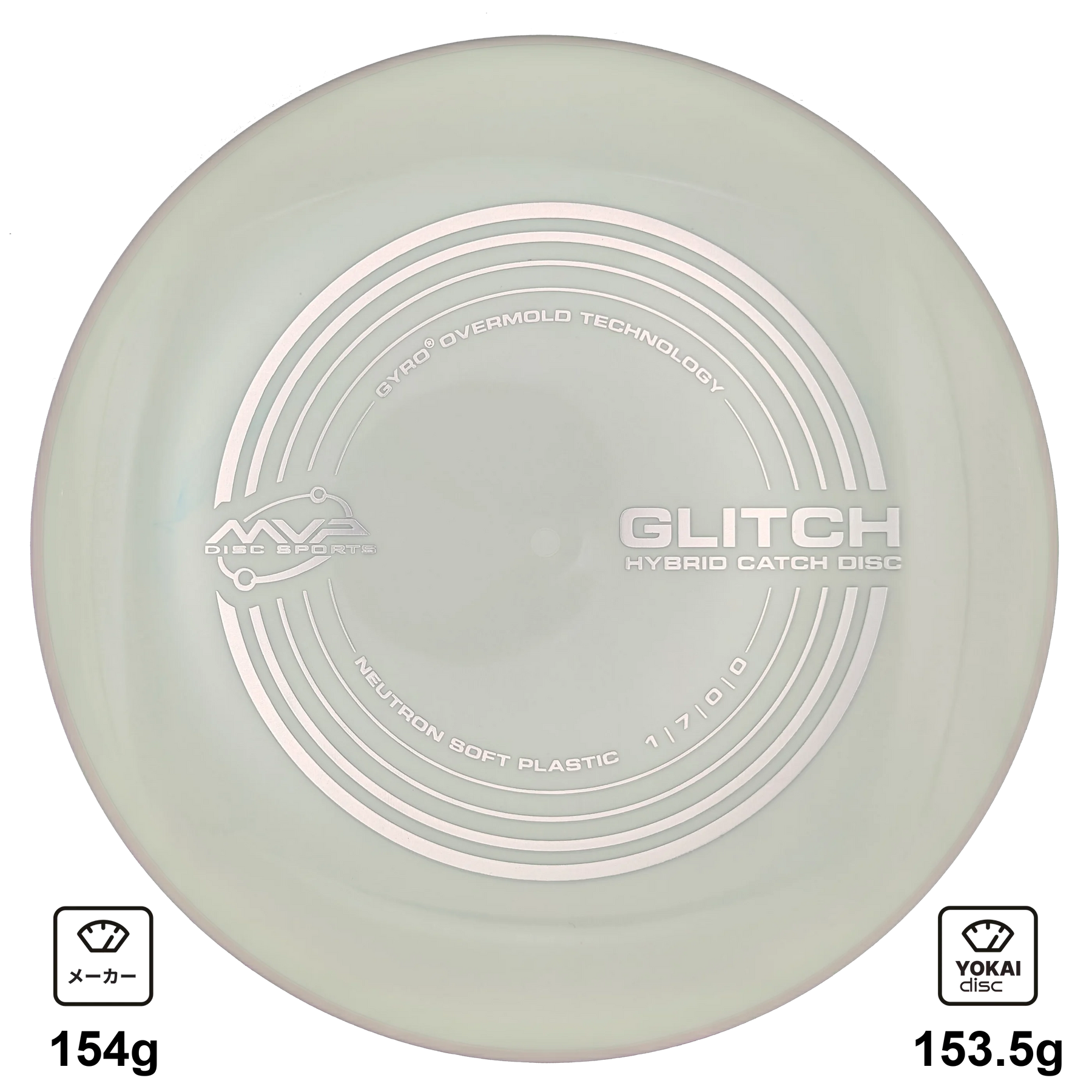 Glitch は、ディスクゴルフディスクとキャッチディスクの境界を曖昧にするために設計されたハイブリッド・キャッチディスクです。フライトナンバーは 1 | 7 | 0 | 0 で、MVP 初のグライド7のディスクとなります。ニュートラルな飛びにより、最初に使うディスクとして非常に適しており、アルティメット経験者やパワーが控えめなプレーヤーにも最適です。